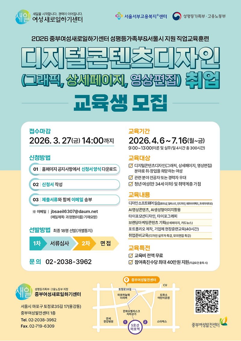 [직업훈련]서울시중부여성발전센터 디지털콘텐츠디자인(그래픽,상세페이지,영상편집)취업 과정